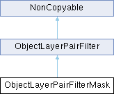 Filter class to test if two objects can collide based on their object layer. Used while finding collision pairs. Uses group bits and mask bits. Two layers can collide if Object1.Group & Object2.Mask is non-zero and Object2.Group & Object1.Mask is non-zero. The behavior is similar to that in e.g. Bullet. This implementation works together with BroadPhaseLayerInterfaceMask and ObjectVsBroadPhaseLayerFilterMask