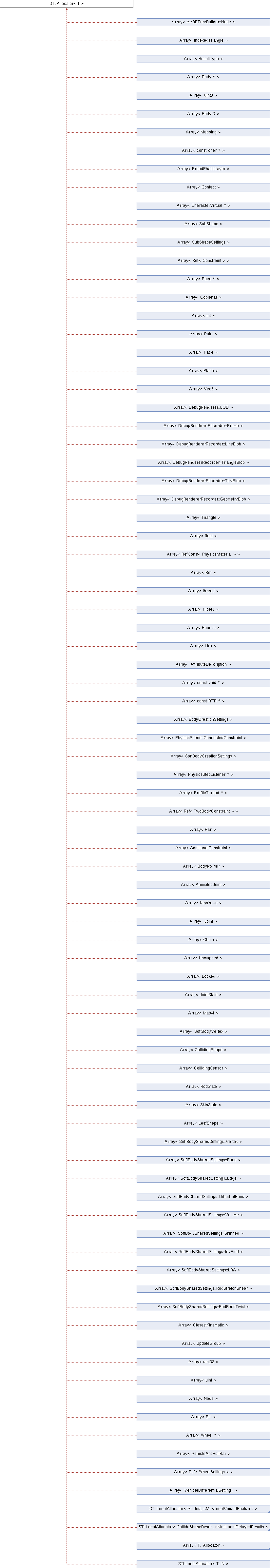 Array< AABBTreeBuilder::Node > Array< IndexedTriangle > Array< ResultType > Array< Body * > Array< uint8 > Array< BodyID > Array< Mapping > Array< const char * > Array< BroadPhaseLayer > Array< Contact > Array< CharacterVirtual * > Array< SubShape > Array< SubShapeSettings > Array< Ref< Constraint > > Array< Face * > Array< Coplanar > Array< int > Array< Point > Array< Face > Array< Plane > Array< Vec3 > Array< DebugRenderer::LOD > Array< DebugRendererRecorder::Frame > Array< DebugRendererRecorder::LineBlob > Array< DebugRendererRecorder::TriangleBlob > Array< DebugRendererRecorder::TextBlob > Array< DebugRendererRecorder::GeometryBlob > Array< Triangle > Array< float > Array< RefConst< PhysicsMaterial > > Array< Ref > Array< thread > Array< Float3 > Array< Bounds > Array< Link > Array< AttributeDescription > Array< const void * > Array< const RTTI * > Array< BodyCreationSettings > Array< PhysicsScene::ConnectedConstraint > Array< SoftBodyCreationSettings > Array< PhysicsStepListener * > Array< ProfileThread * > Array< Ref< TwoBodyConstraint > > Array< Part > Array< AdditionalConstraint > Array< BodyIdxPair > Array< AnimatedJoint > Array< Keyframe > Array< Joint > Array< Chain > Array< Unmapped > Array< Locked > Array< JointState > Array< Mat44 > Array< SoftBodyVertex > Array< CollidingShape > Array< CollidingSensor > Array< RodState > Array< SkinState > Array< LeafShape > Array< SoftBodySharedSettings::Vertex > Array< SoftBodySharedSettings::Face > Array< SoftBodySharedSettings::Edge > Array< SoftBodySharedSettings::DihedralBend > Array< SoftBodySharedSettings::Volume > Array< SoftBodySharedSettings::Skinned > Array< SoftBodySharedSettings::InvBind > Array< SoftBodySharedSettings::LRA > Array< SoftBodySharedSettings::RodStretchShear > Array< SoftBodySharedSettings::RodBendTwist > Array< ClosestKinematic > Array< UpdateGroup > Array< uint32 > Array< uint > Array< Node > Array< Bin > Array< Wheel * > Array< VehicleAntiRollBar > Array< Ref< WheelSettings > > Array< VehicleDifferentialSettings > STLLocalAllocator< Voided, cMaxLocalVoidedFeatures > STLLocalAllocator< CollideShapeResult, cMaxLocalDelayedResults > Array< T, Allocator > STLLocalAllocator< T, N >