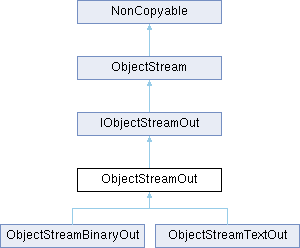 ObjectStreamOut contains all logic for writing an object to disk. It is the base class for the text and binary output streams (ObjectStreamTextOut and ObjectStreamBinaryOut).